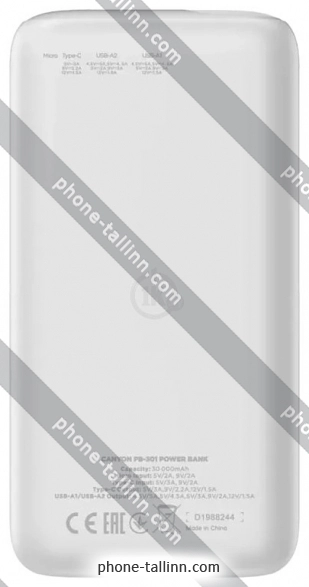 Canyon PB-301 30000mAh - купить в Таллине, Эстония.Бренд: Canyon Зимняя скидка 2025 г.: 10%, экономия: 4 €