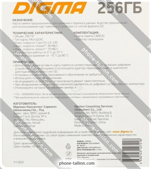 Digma MicroSDXC Class 10 Card30 DGFCA256A03 - купить в Таллине, Эстония.Бренд: Digma Зимняя скидка 2025 г.: 15%, экономия: 3 €