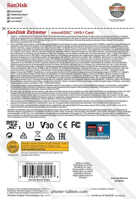 SanDisk Extreme microSDXC SDSQXA1-256G-GN6GN 256GB, ТаллинБренд: SanDisk Осенняя скидка 2025 г.: 15%, экономия: 5 €