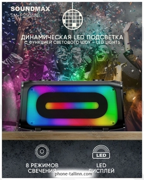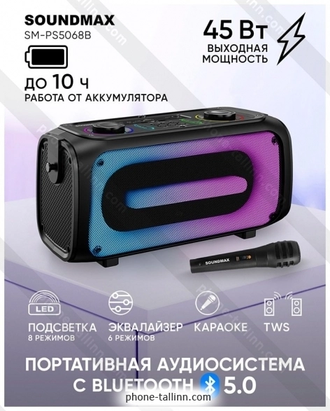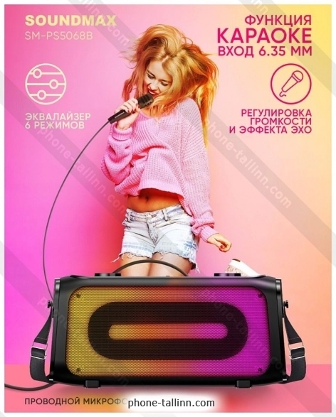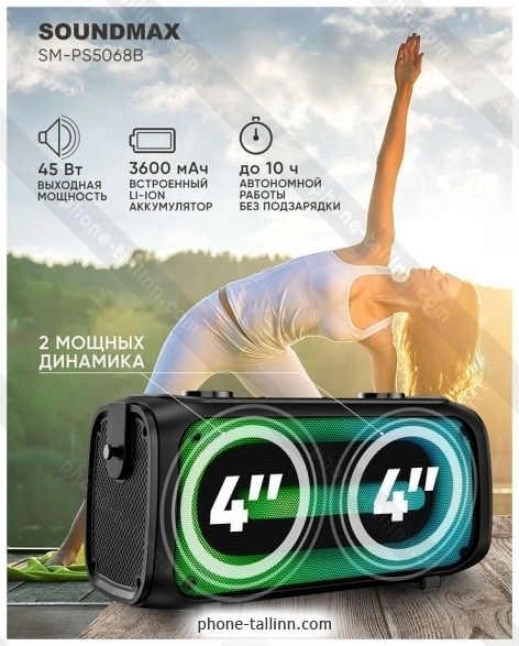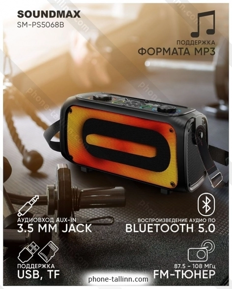 Портативная акустика Soundmax SM-PS5068B - купить в Таллине, Эстония.Бренд: Soundmax Зимняя скидка 2025 г.: 10%, экономия: 3 €